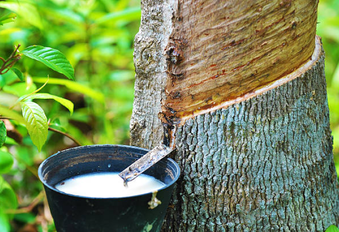 L'hévéa est une ressource clé pour la production, transformation et commercialisation du latex naturel, essentiel dans la fabrication de pneus, gants et autres produits en caoutchouc. Sa culture soutient les industries automobile, médicale et manufacturière.